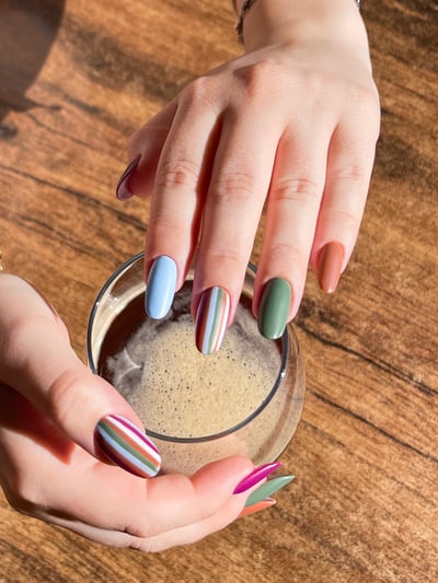 Experiment with delicate floral patterns in various colours and complete the look with a matte top coat. The result? A unique matte floral nail art: a charming, soft, and colourful nail design.