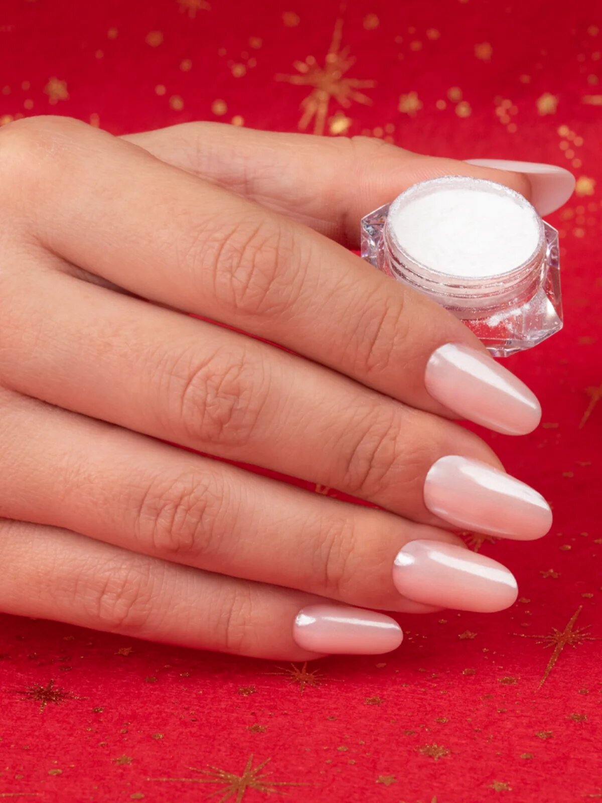 - El polvo por excelencia con el que recrear uñas glazed blancas es el pigmento White Pearl.