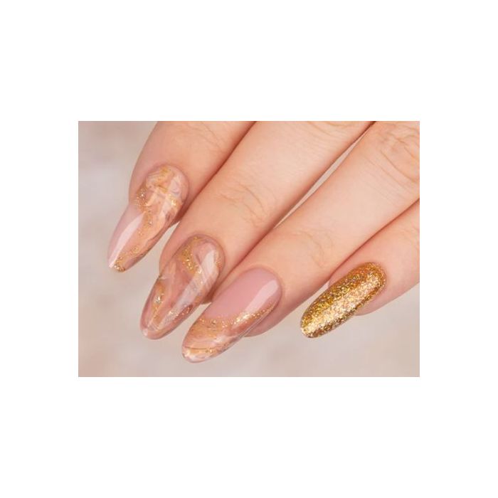 Ongles avec effet marbre sur tons marrons et touche de doré.