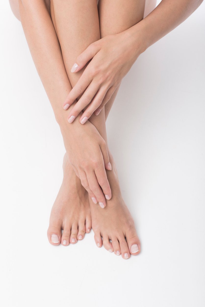 Tonalità nude coordinate su mani e piedi
