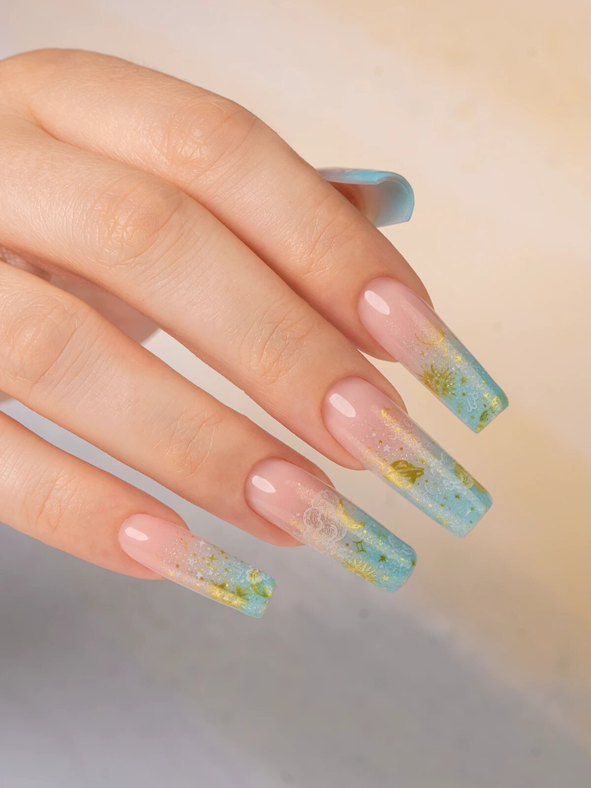 Con questa forma e lunghezza estrema non c'è limite alla fantasia. Gioca con metal foil oro e strass di diverse misure per ottenere una manicure impeccabile e un effetto wow assicurato!