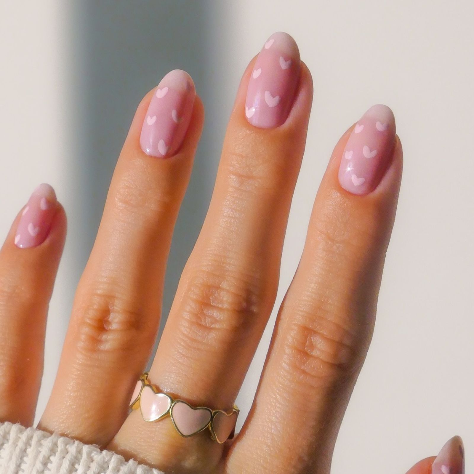 Cuori ovunque ma non invadenti. Questa è la nail art rosa di San Valentino più delicata che tu possa provare. La base rosa lattiginosa dona un look evergreen, mentre i piccoli cuori realizzati con un semplice bastoncino d’arancio rendono il risultato super carino.