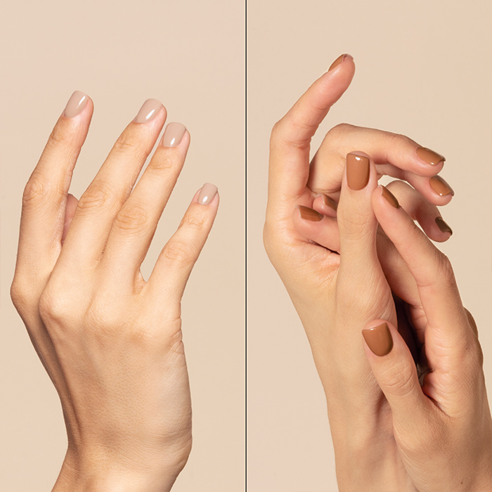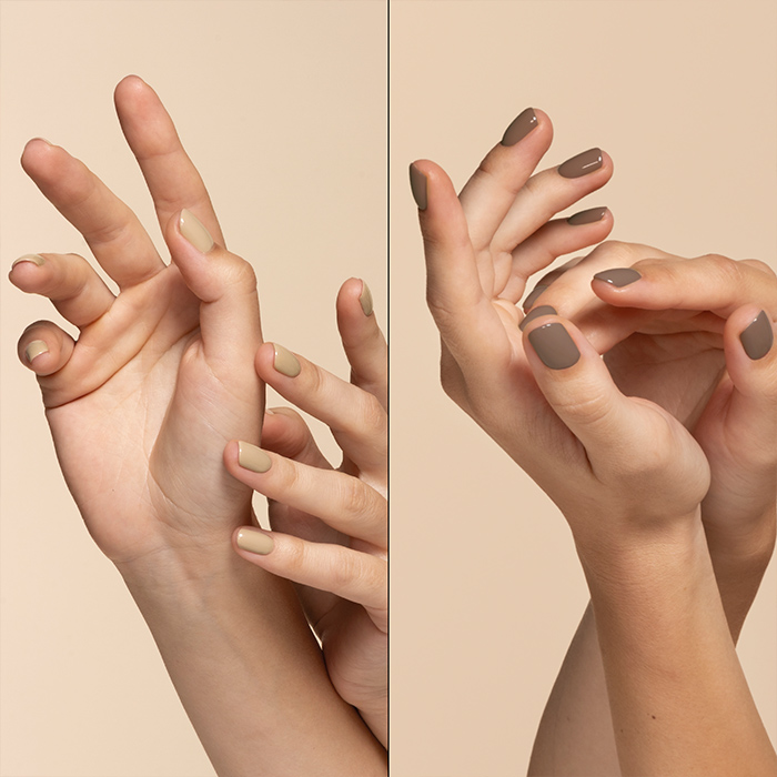 Ispirata ad un concetto skin, questa ampia gamma di smalti semipermanenti si sviluppa attraverso una palette di tonalità neutre, dal beige etereo al rosa tenue, dal taupe agli avvolgenti marroni caldi, per esaltare ogni incarnato con un look sofisticato e contemporaneo per un effetto ton sur ton o a contrasto.